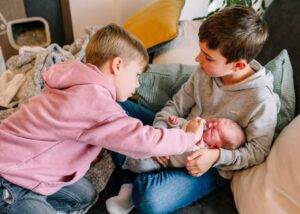 Die Geschwister sind nach der Ankunft des neuen Familienmitglieds hin und weg.